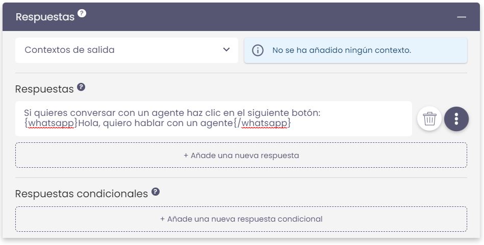 Guardamos el intent, y podremos visualizar el botón de WhatsApp en la conversación con el bot.