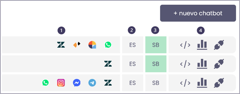 1. Canais conectados ao projeto (por exemplo, Zendesk, Zendesk Chat, Desk, WhatsApp).