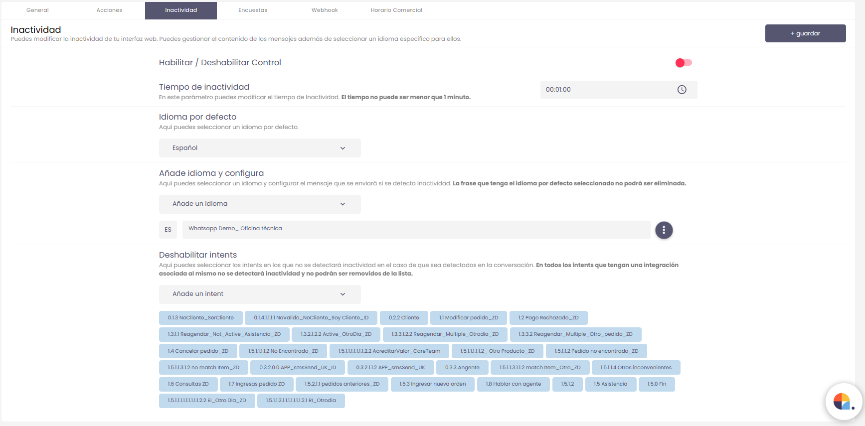 Con esta función podremos detectar si el usuario abandona la interacción con nuestro chatbot y lanzar un mensaje para que la retome. También podremos decidir el lapso de tiempo que nuestro chatbot considerará como “inactividad”.