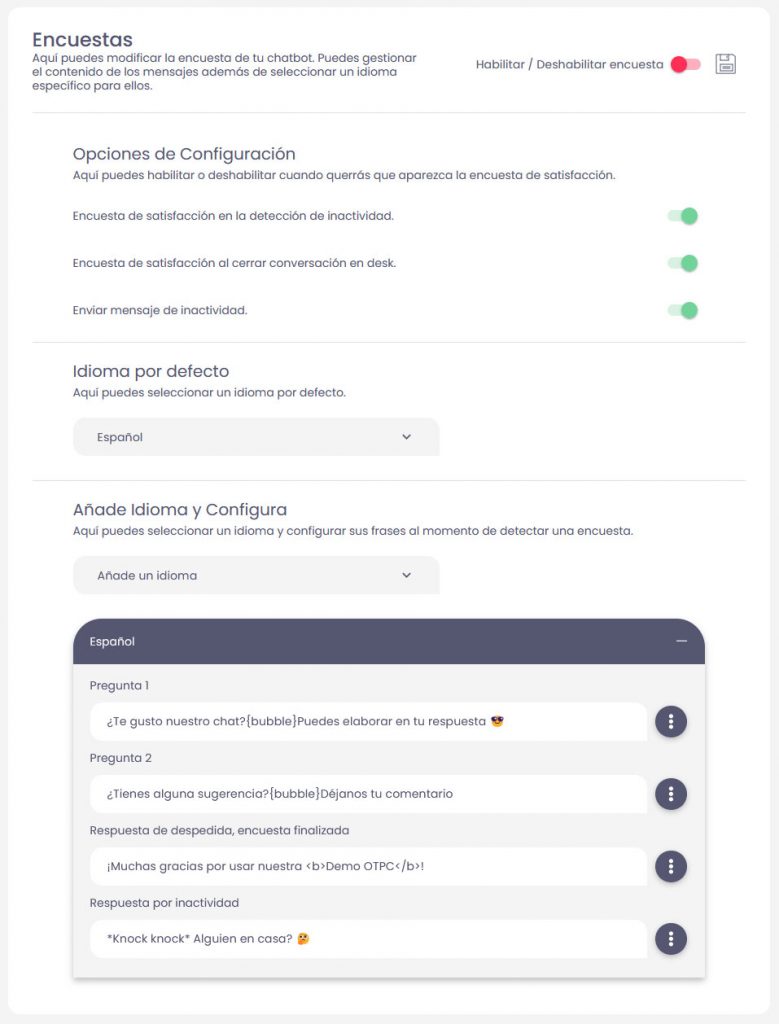 Habilitar / Deshabilitar encuesta: