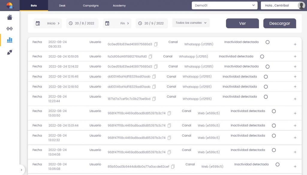 Cuando se hace clic en Ver, Plataforma Centribal genera un registro con la fecha y canal elegidos.