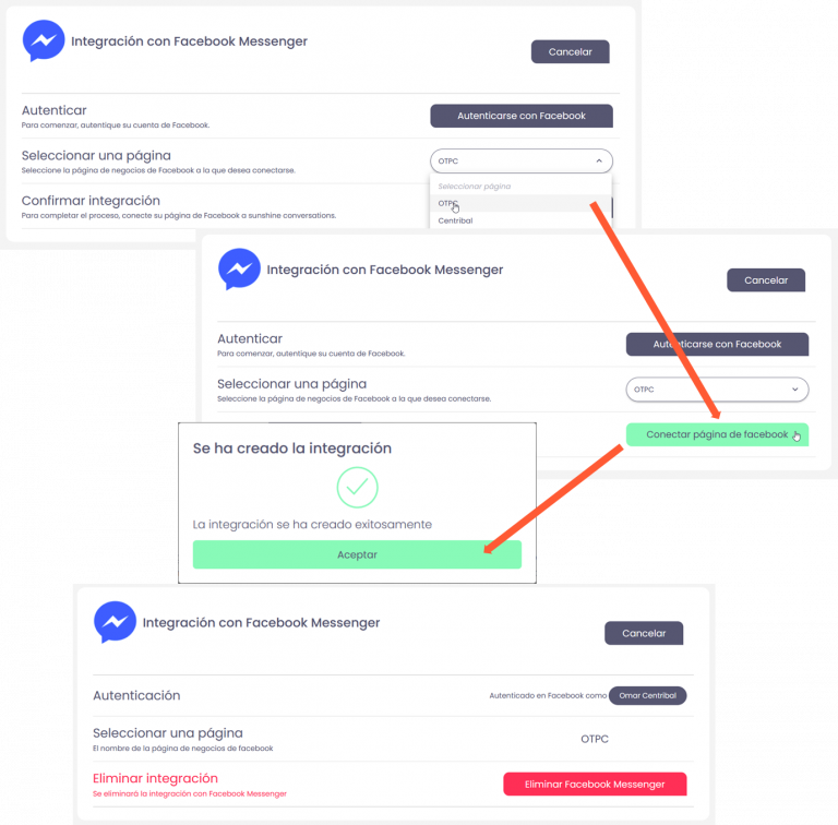 Tras volver a Plataforma Centribal, veremos que el botón Conectarse con Facebook está habilitado.