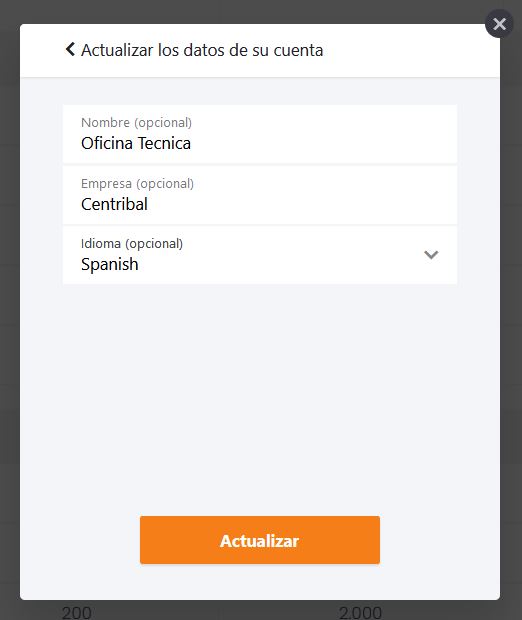Aquí podremos cambiar el nombre asociado a nuestra cuenta, el nombre de la empresa y cambiar el idioma en el que se visualiza la cuenta.