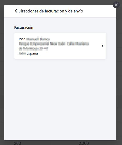Para cambiar la dirección de facturación, en la pantalla principal seleccionamos el enlace correspondiente y nos mostrara la dirección.