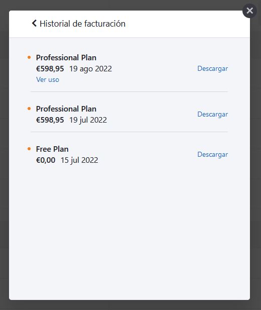 Por ultimo, podremos revisar el historial de facturación en el ultimo enlace del panel inicial.