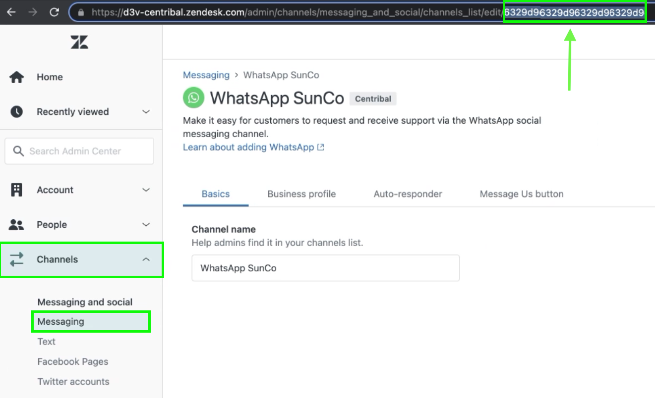 Puedes encontrar el WhatsApp Integration ID en el centro administrativo de Zendesk siguiendo la siguiente vía: