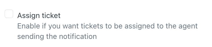 Tanto en la aplicación principal como en la de usuarios aparecerá un checkbox para que, al crear el ticket después de haber enviado la notificación, el ticket sea asignado de manera automática al agente que esté enviando la notificación. Por defecto, este checkbox está activado.